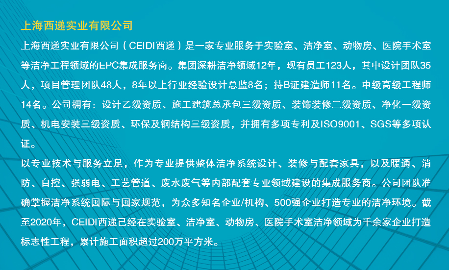 實驗室/潔凈室規劃設計、裝修、內部配套系統建設一體化服務商 CEIDI西遞