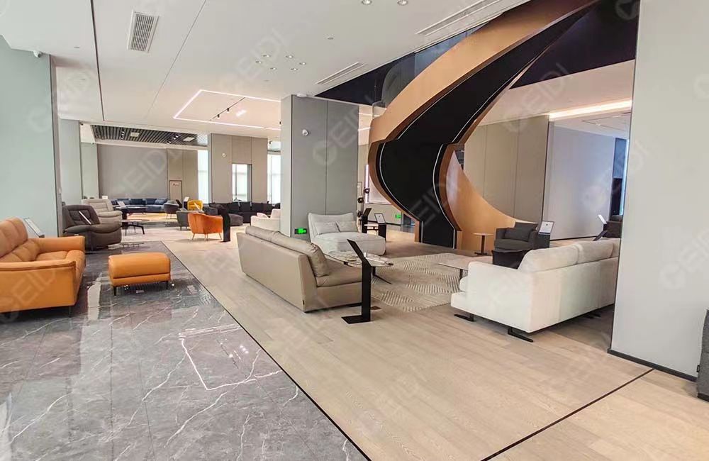 項目成果:位于浙江嘉興海寧市, 建筑面積5642.79㎡。該項目是CEIDI西遞2023年全程運用EPC(工程總承包)模式服務建設的項目之一。舒凡克斯作為嘉興海寧市重點企業之一,對該項目也投入了巨大的資金與期望,力求將其打造成為國內先進的示范型智能家居體驗與辦公綜合場所。CEIDI西遞作為項目的全方位EPC集成服務商,承擔了項目規劃設計、裝修施工、采購、專業技術平臺建設等全套業務。CEIDI西遞設計師通過對企業背景、品牌及產品調性充分調研,在設計方案中將與藝術感與體驗感充分交融,在整個展示體系中通過點、面、光、影共生的風格將材料展示空間、功能性展示空間以及實驗檢測空間全面融合。讓每一位蒞臨現場的貴賓都能沉浸式感受舒凡克斯從原材料篩選到性能測試,再到人體工學適配產品體驗的完整過程。在整個施工過程中,除了應用多項材料/施工專利外,還啟用西遞新開發的數字化管理系統和信息交互小程序,為智能家居研發展示大樓的可視化樣板工程奠定良好基礎。