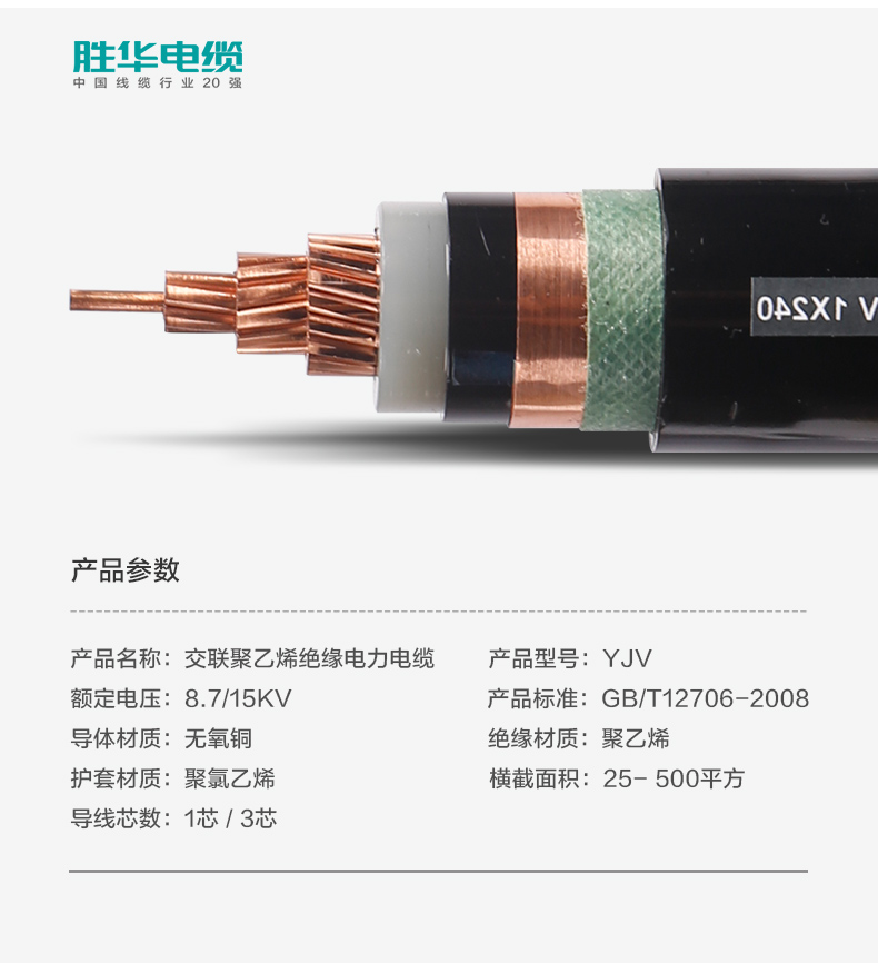 勝華電纜YJV-8.715KV中壓交聯(lián)聚氯乙烯絕緣銅芯電纜
