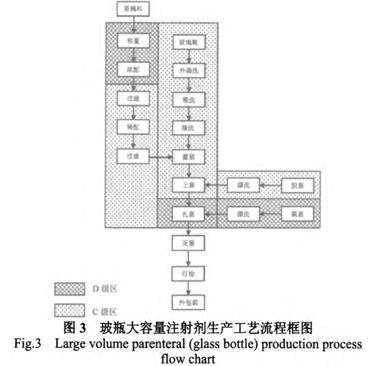 由于大輸液是經(jīng)靜脈直接輸入人體內(nèi)部,因此必須確保輸液質(zhì)量,包括藥品的安全性、穩(wěn)定性、無菌、無熱源等。大容量注射劑是典型的最終滅菌工藝生產(chǎn)的無菌制劑,由于生產(chǎn)需要的物流量大,設(shè)備體積大且多為固定式設(shè)備,因此大輸液車間通常面積較大,維持車間潔凈度的難度較大,成本較高,設(shè)計(jì)時應(yīng)根據(jù)工藝流程和物料流向合理進(jìn)行工藝布局,既有滿足生產(chǎn)的足夠空間,又可實(shí)現(xiàn)人流和物流的合理流動。