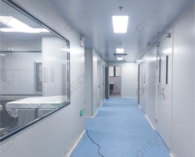 2. 潔凈室墻、頂板材料一般采用50mm厚的聚苯乙烯莢芯彩鋼板、凈化專用的氧化鋁型材制造。門采用凈化密閉門,窗采用鋁合金玻璃固定窗。